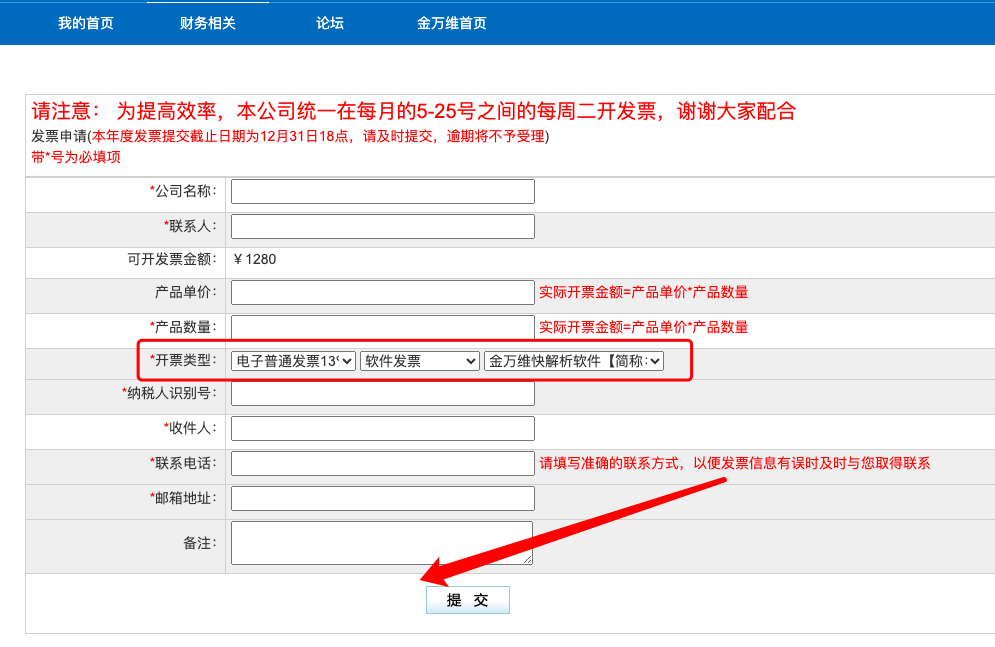 开票类型您可以选择“电子发票13%税率”、软件发票、选择快解析产品;这里特别提醒:发票均为电子发票,所以邮箱请您务必填写正确,另外,备注栏目,您需要写清楚:“我需要开增值税专用发票”,并且您开增值税发票的所有信息填写上。