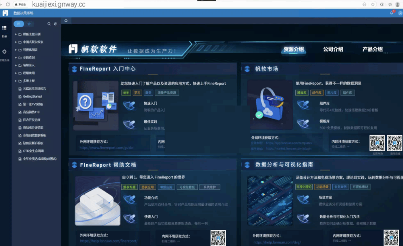 帆软BI是基于BS架构研发的系统,通过网页访问的数据分析系统
