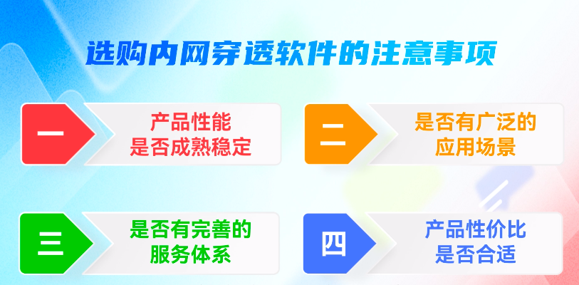 选购内网穿透软件的注意事项,一、产品性能是否成熟稳定,往往老的的产品更稳定;二、是否有各个领域的应用案例,应用场景越多产品性能越佳;三、是否有服务保障,软件及服务,出现问题是否能及时响应;四、产品的价格和对应的性能指标是否合理
