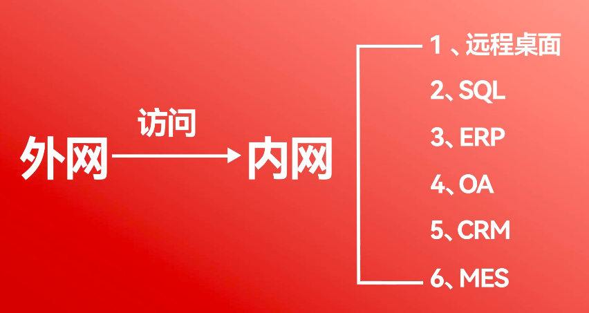 在日常的办公中经常会有外网访问内网应用的需求,例如:远程桌面、SQL、ERP、OA、CRM、MES等,但每个客户的网络使用环境又不一样