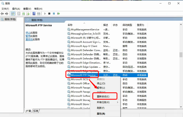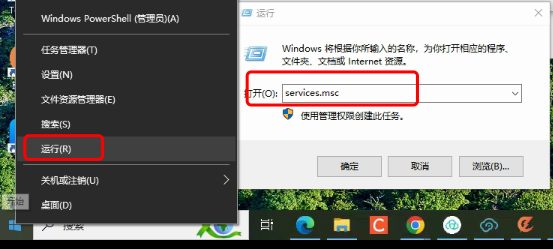 在FTP服务器电脑点击“开始”-“运行” 输入 services.msc 然后点击确定