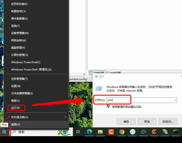 在FTP服务器上,点击开始 - 运行 ,输入 cmd , 然后点击 确定