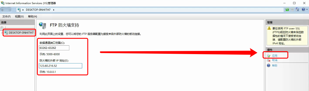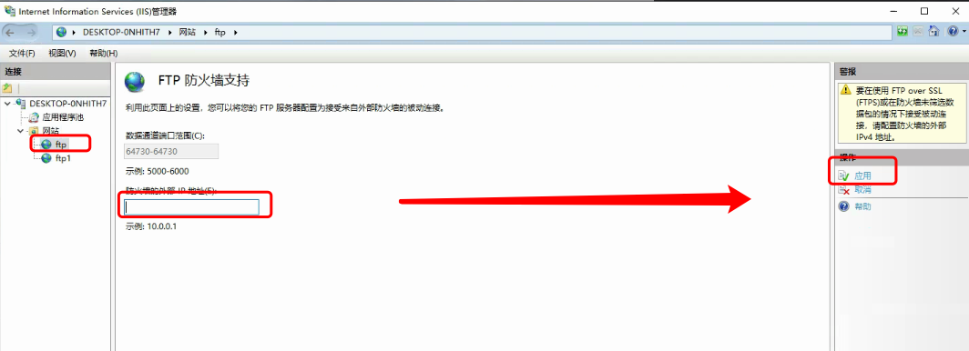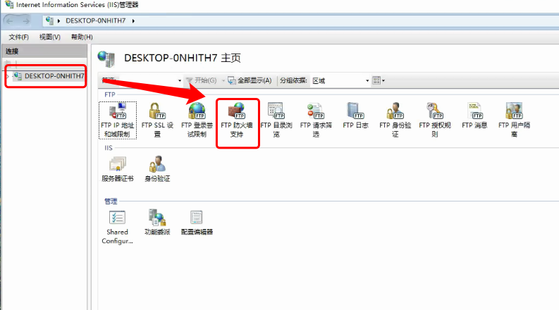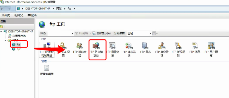 鼠标左键单击原来的FTP站点,然后鼠标双击“FTP防火墙支持”