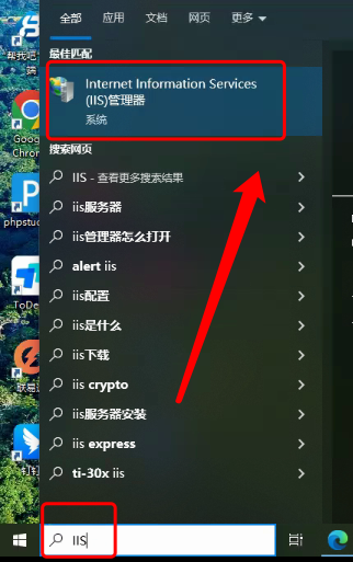 在电脑左下方搜索界面,输入IIS,打开IIS管理器