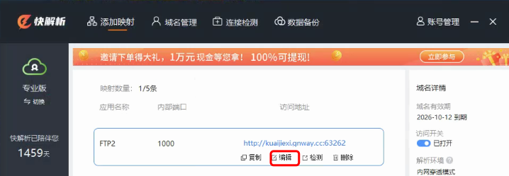 注册完毕后,在FTP服务器上打开快解析官网,点击下载,下载快解析安装包后,按照提示进行安装