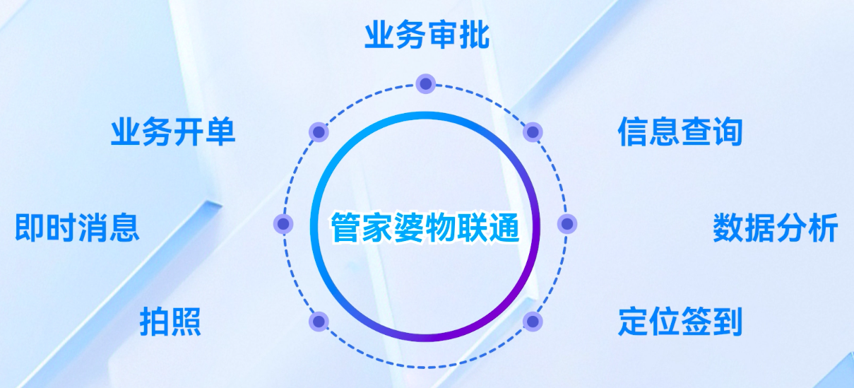管家婆物联通对接管家婆软件,为企业提供了一套终端管理方案,以管家婆软件为后台,在手机或IPAD或电脑上实现业务开单、业务审批、信息查询、数据分析、定位签到、拍照、即时消息等功能
