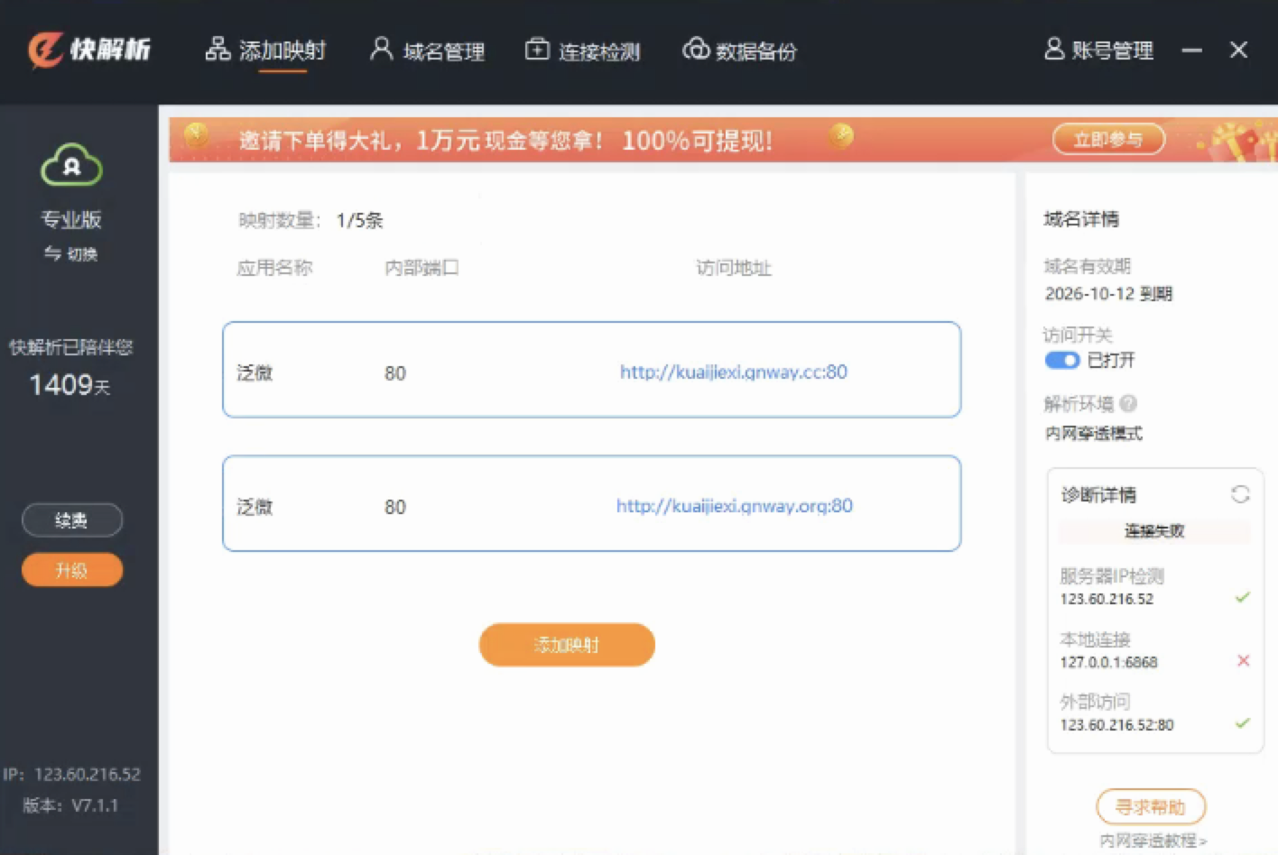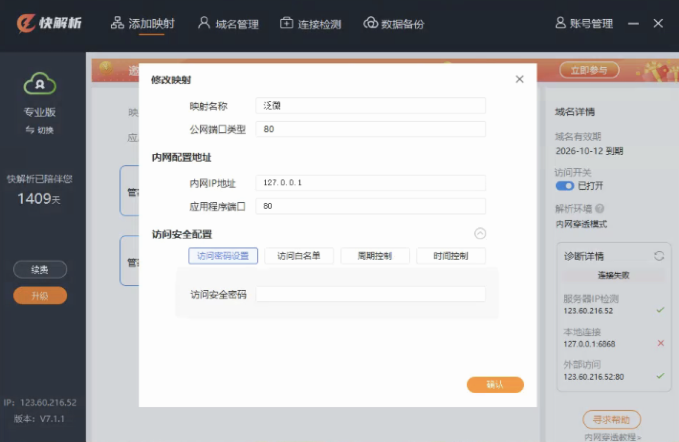 添加成功后快解析就为您提供了一个访问地址,这个地址是外网访问泛微OA系统的地址