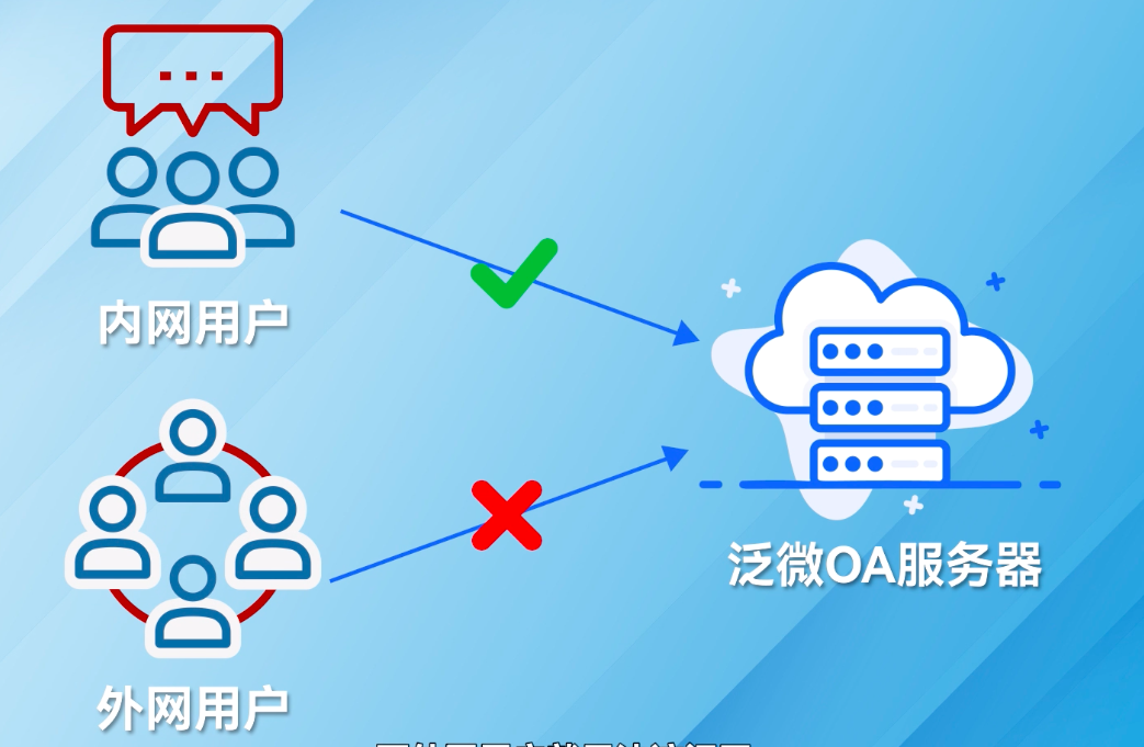 用户部署泛微OA服务器后,内网用户通过泛微OA服务器的内网IP就可以访问服务器了,而外网用户就无法访问了