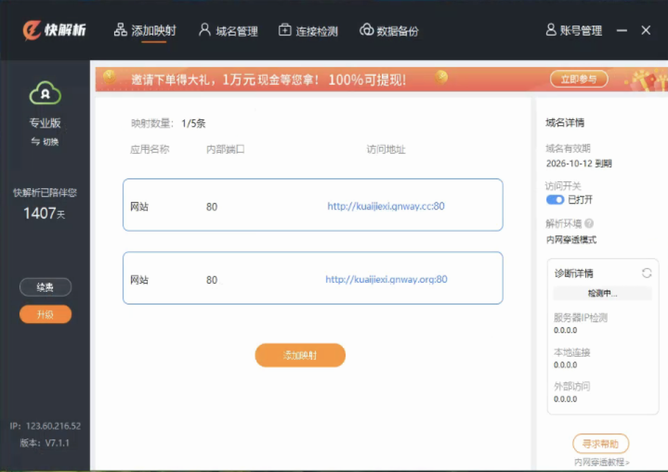 快解析可以为用户提供一个对外访问地址,不需要公网IP也不需要端口映射,快速安全的实现远程访问