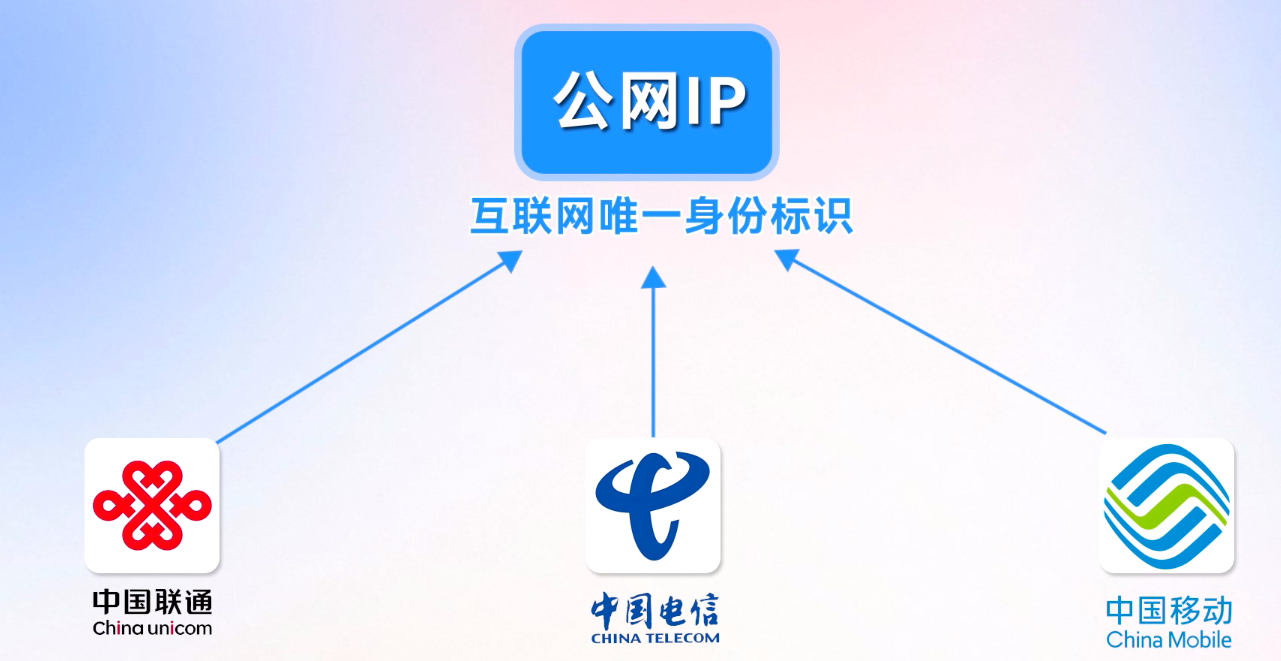 公网IP就是主流的几个网络运营商,网通、电信、移动等提供给用户的唯一对外访问地址,等同于人的身份证